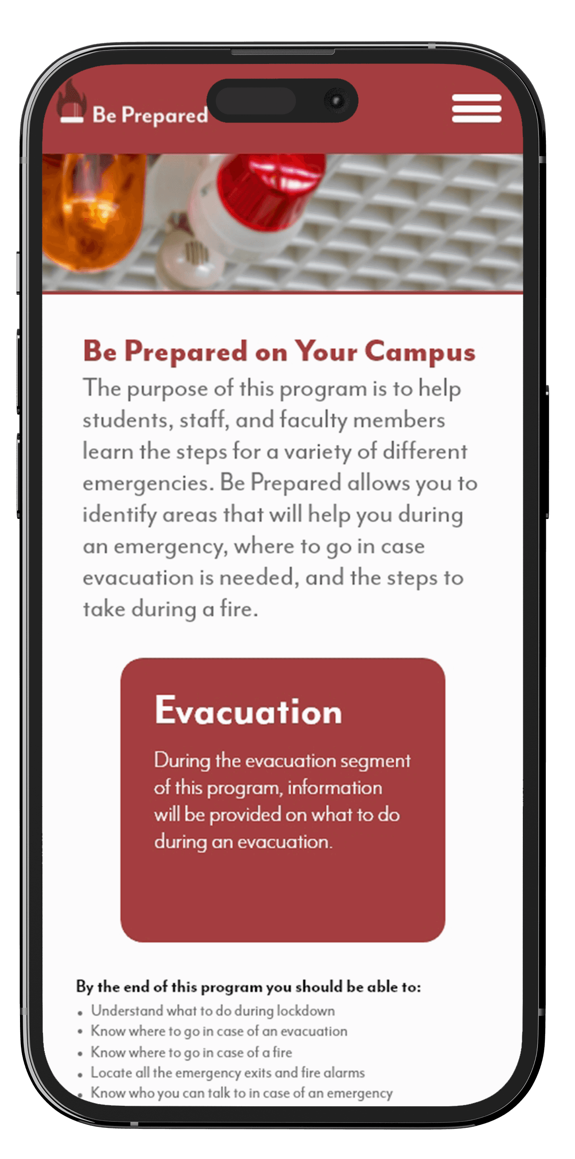 Using AR technology, Be Prepared helps users understand what to do during an emergency situation on campus.